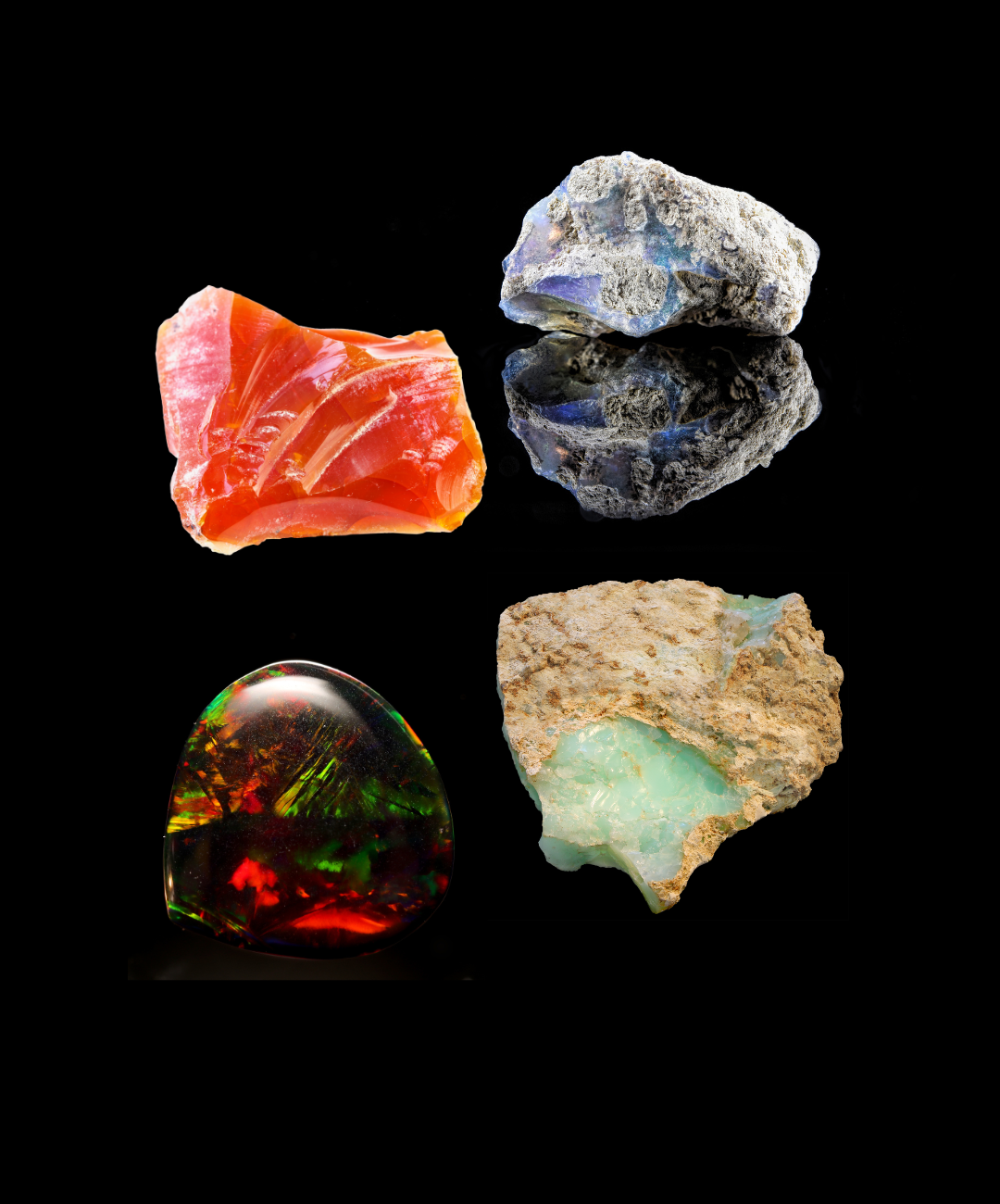 Ethiopian opals are known for their spectacular play-of-color, displaying vivid flashes of red, green, and blue set against a dark background, often in mesmerizing patterns.
