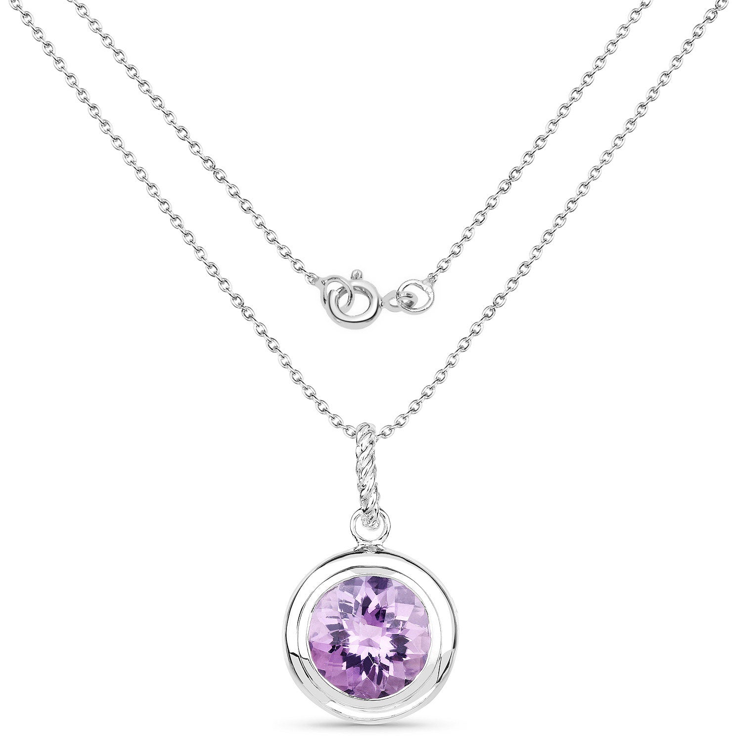 Round Amethyst Solitaire Pendant in 18K White Gold & Plated Sterling Silver .925